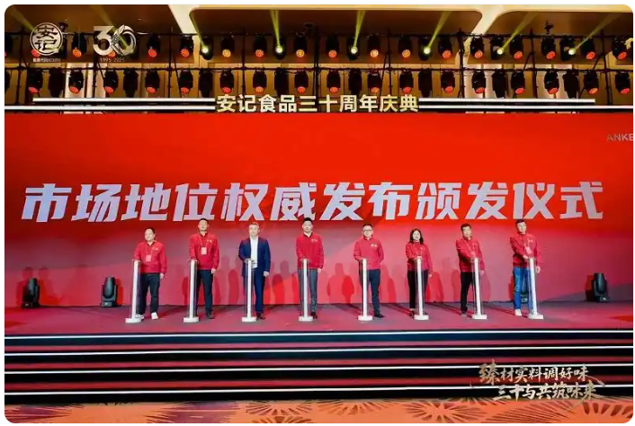 2025年12月4日,安记食品股份有限公司及旗下品牌(以下简称“安记食品”)以“臻材实料调好味,三十与共筑味来”为主题,成功举办三十周年庆典。作为福建省首家A股调味品上市企业,安记食品深耕复合调味品行业三十载,始终坚守“传承百年匠心,用安心调味陪伴国人三餐”的品牌使命,秉持“成为国人信赖的安心复调标杆品牌”的品牌愿景,专注于调味品的研发、生产与销售,凭借长期沉淀的行业经验与技术实力,深受市场与消费者的信赖。